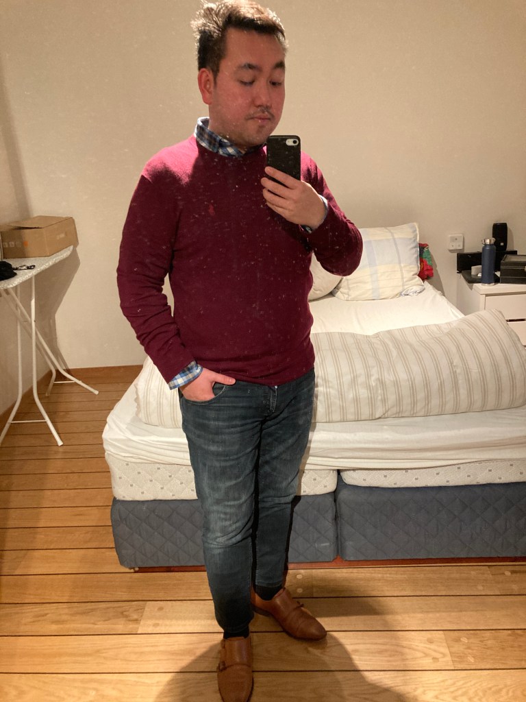 Har du enda ikke funnet en blazer som passer for deg? Frykt ikke, jeg skal ikke tvinge deg til å gå med en blazer. En fin alternativ er å gå med skjorte og genser. Simpelt – gjerne en genser som har en V hals passer mye bedre, da den viser mer av skjortekragen. Det er også jeg i dette innlegget anbefaler deg å legge vekk hettegenseren – siden den ikke gjør deg noe mer formell enn de plaggene du har på deg.